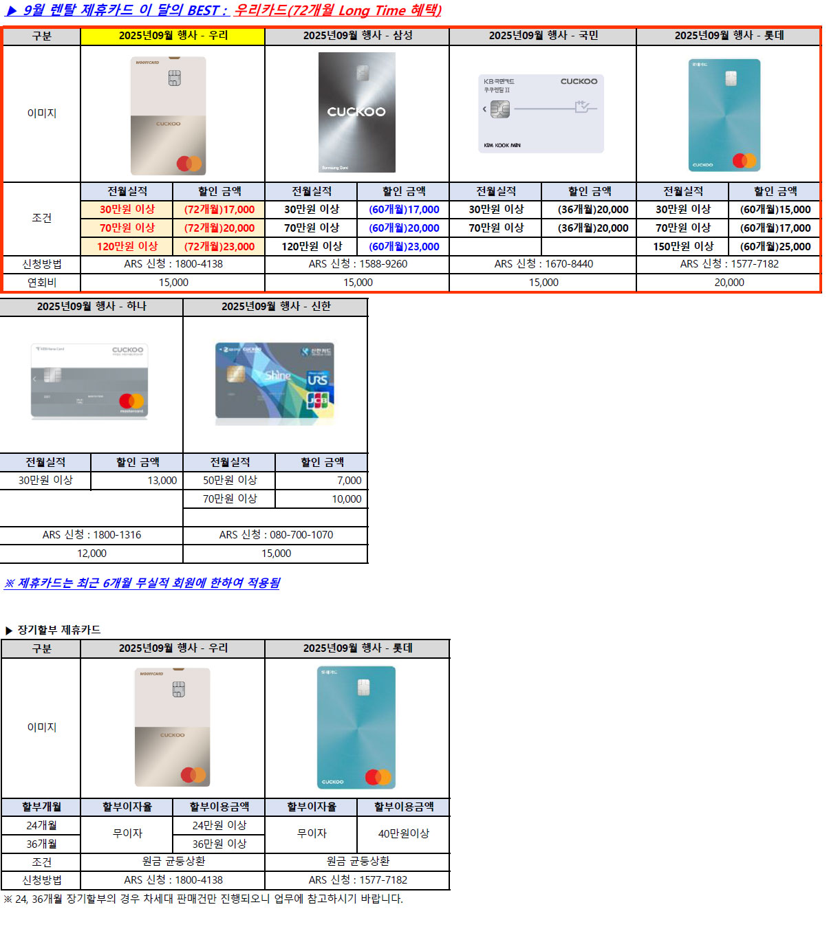 제휴카드 할인 적용시 월 렌탈료 : 0원
